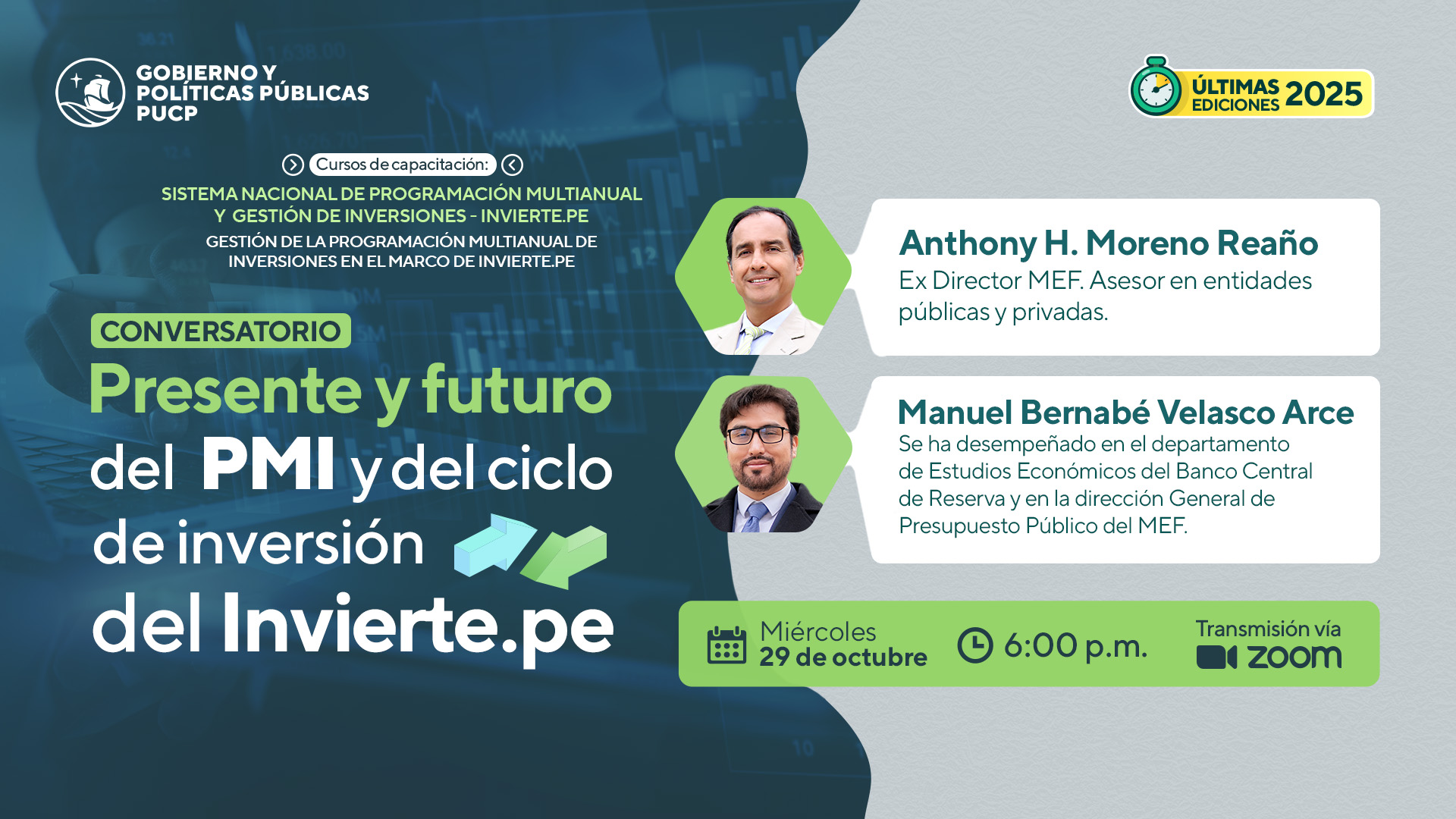 ¡Te invitamos a participar del evento “Presente y futuro del PMI y del ciclo de inversión del Invierte.pe”, un espacio de análisis y reflexión sobre los avances, desafíos y perspectivas del sistema de inversión pública en el Perú!