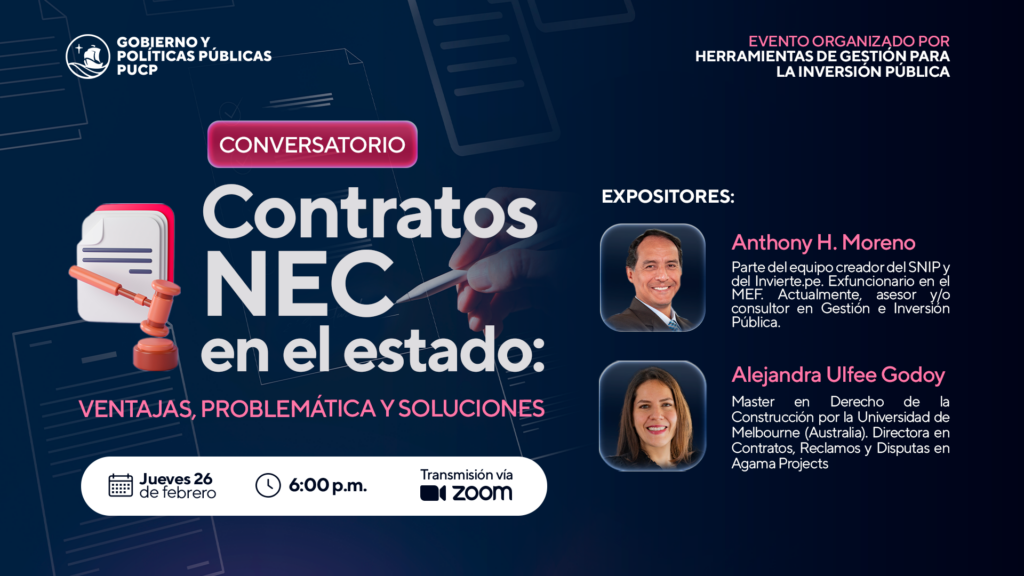 Evento Conversatorio: "Contratos NEC en el Estado: ventajas, problemática y soluciones" 26/02/2026 06:00 pm Vía Zoom